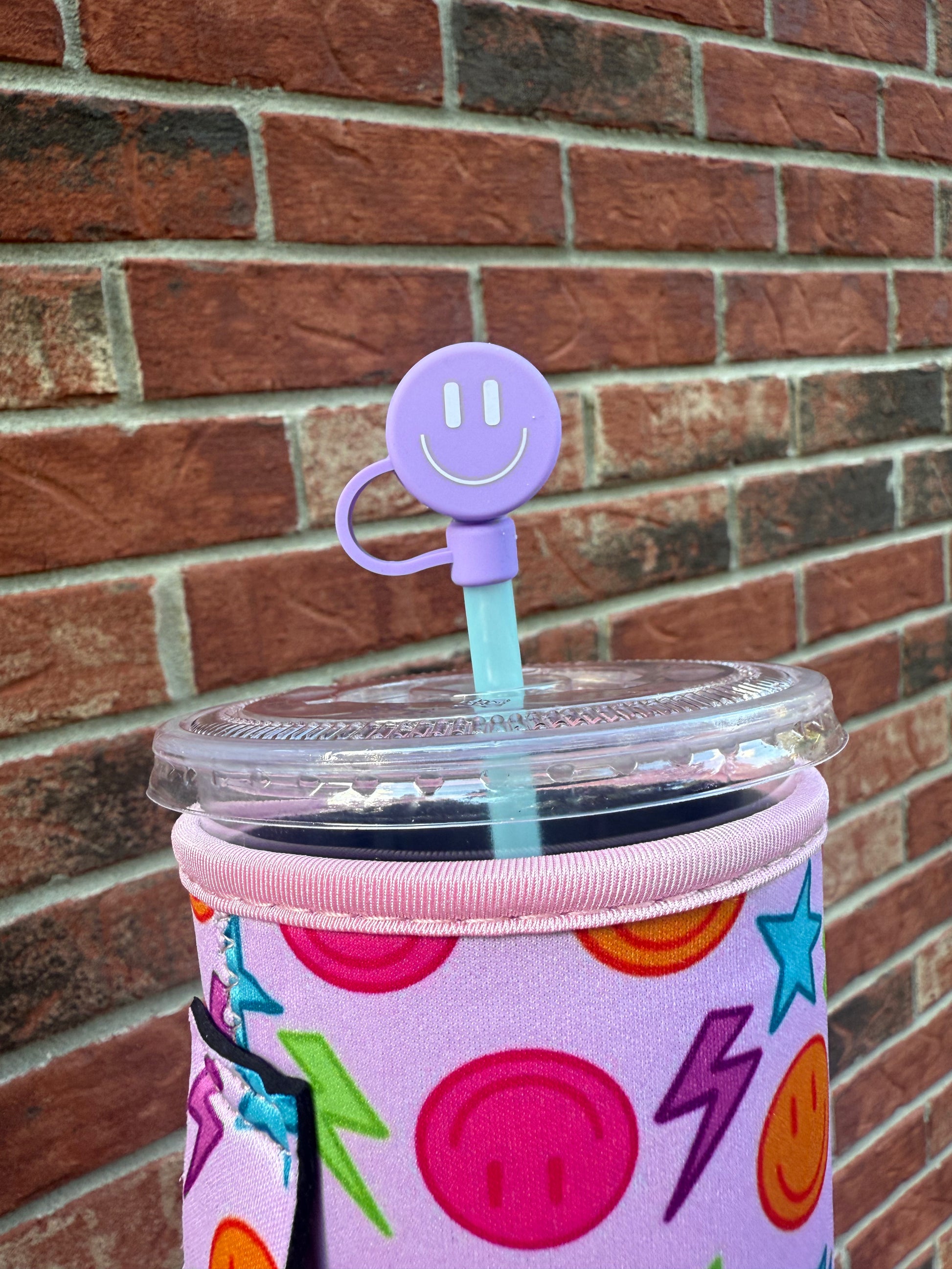 Purple Smiley Straw Topper 10mm (10 pack)